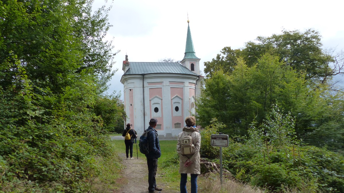 Od kostelíku je krásný výhled na Mníšek pod Brdy