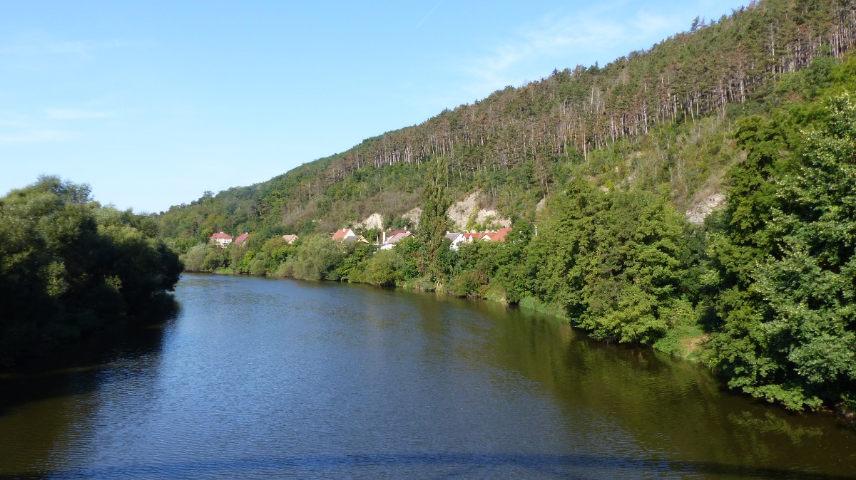 Řeka Berounka u níž nás čeká za mostem hledání zkamenělin