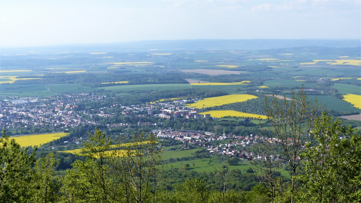 Pohled od rozhledny na Bystřici pod Hostýnem a Chvalčov