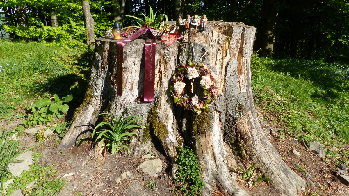 Ozdobený pařez cestou Jurkovičovy Křížové cesty