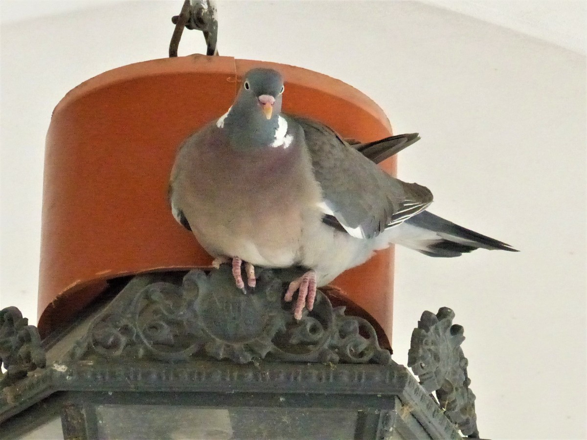 Holub nad námi při posezení u kávy