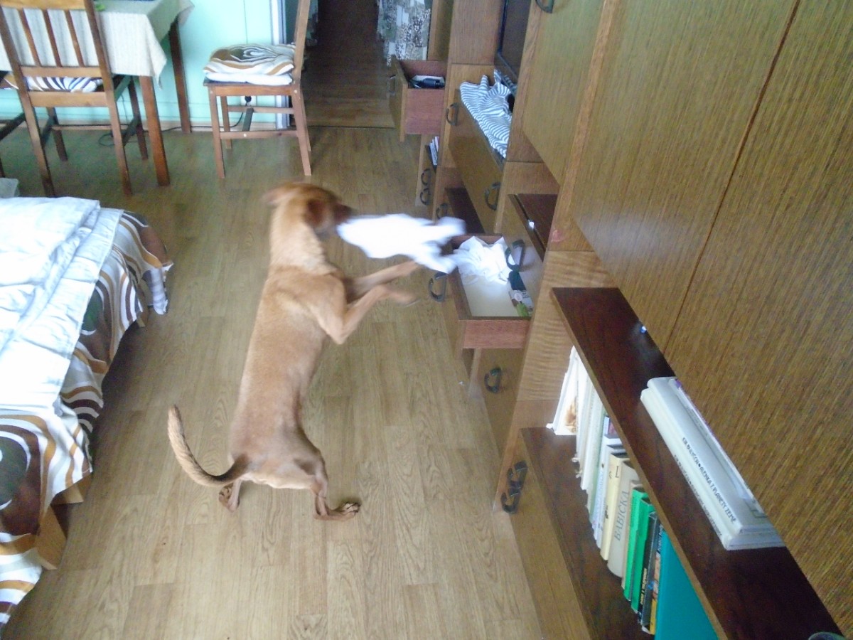 Nesu bábince pantofel, aby se nemusela ohýbat.