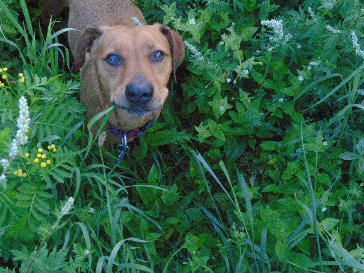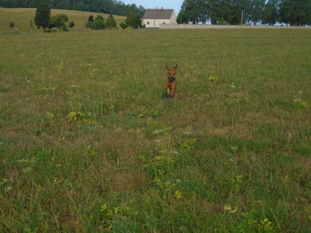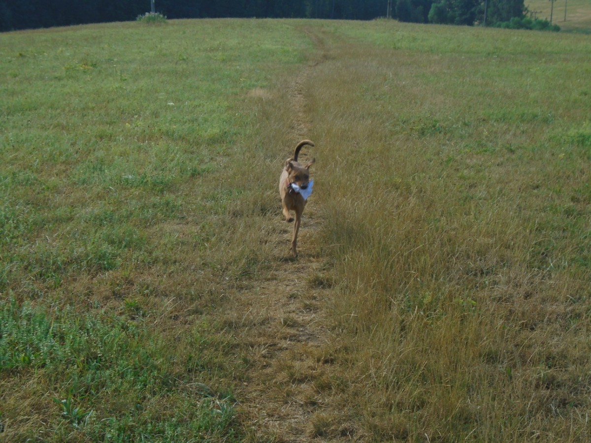 Musím hezky sedět na místě, bábinka mi šla schovat do trávy piškot.