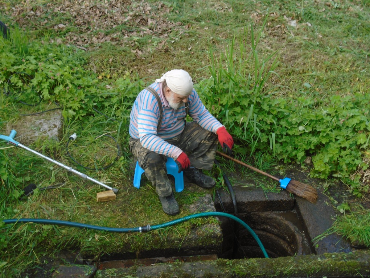 Starousedlík čistí studánku.