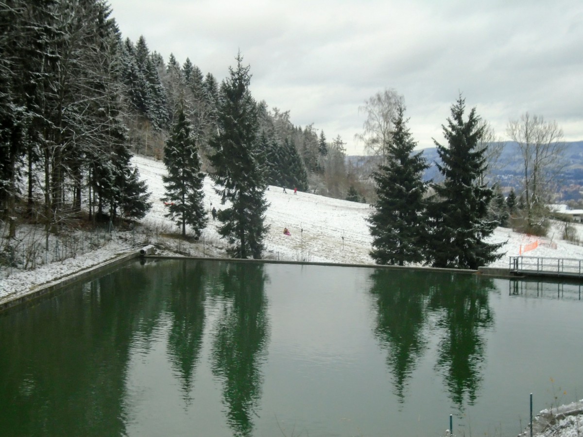 Vodní nádrž, zásoba na zasněžování sněžnými děly.