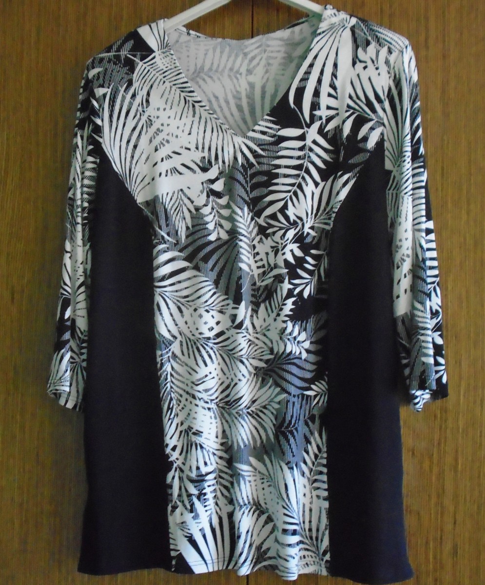 Moje oblíbená kombinace barev. Volnější střih, ale to mám ráda. K černým, nebo bílým kalhotám super.