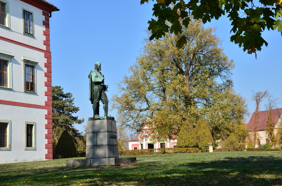 Socha původně stála na náměstí, po r.1948 byla přemístěna do zámecké zahrady.