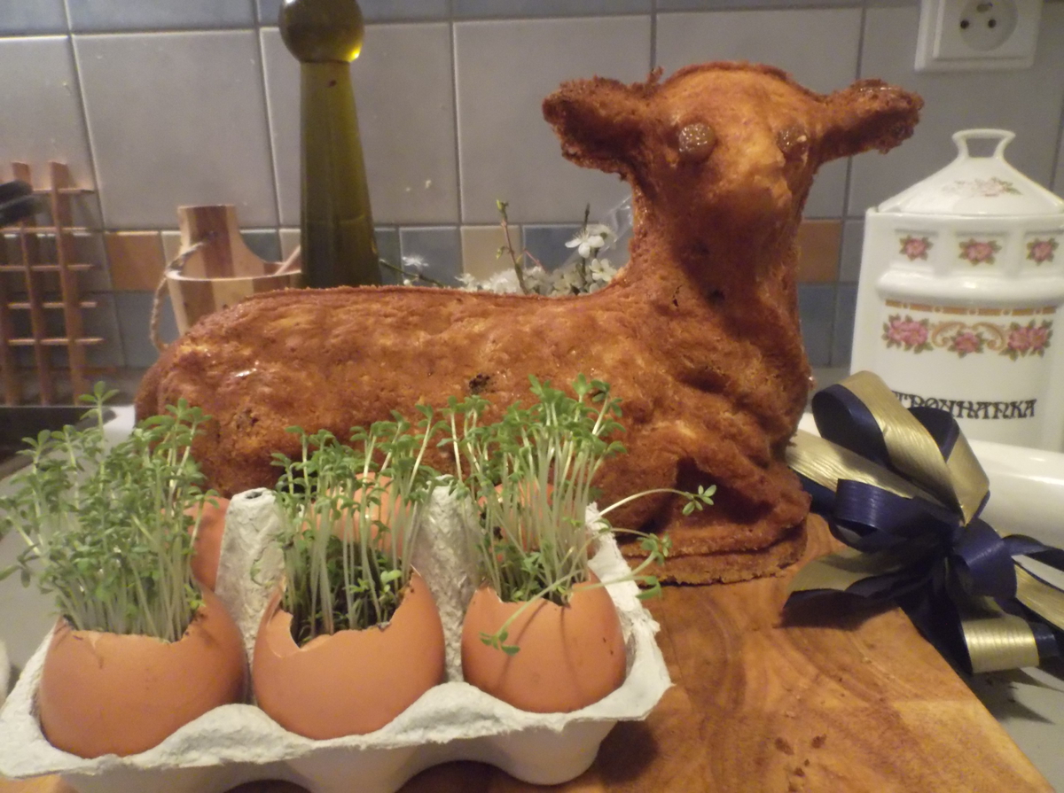 ...ještě dozdobit mašli, pocukrovat...ze skořápek vykukuje řeřicha