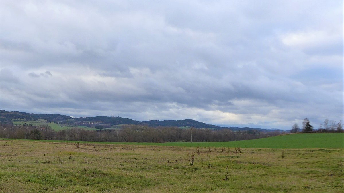 Z louky na Střelu jsou hezké výhledy