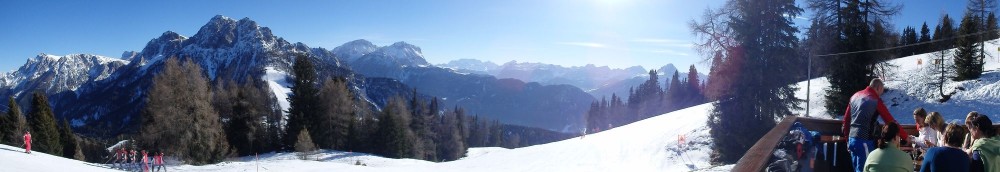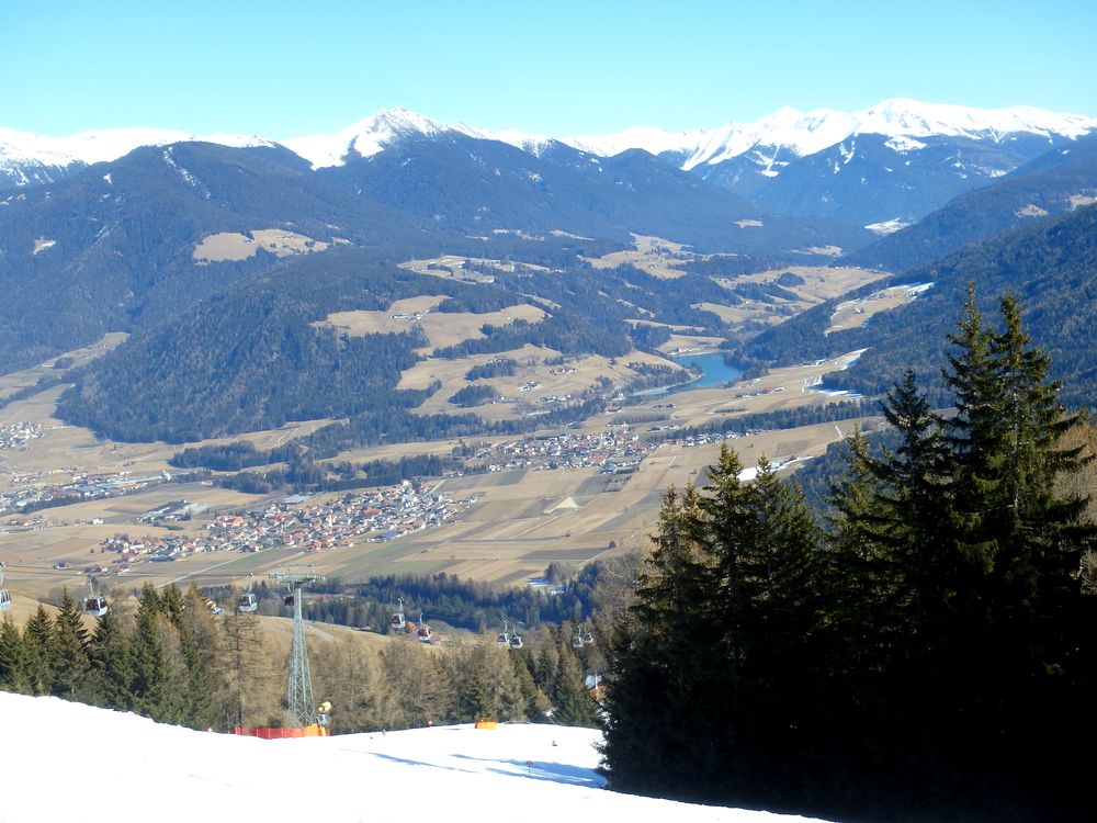 Pohled z Kronplatzu do údolí - to modré je řeka Inn