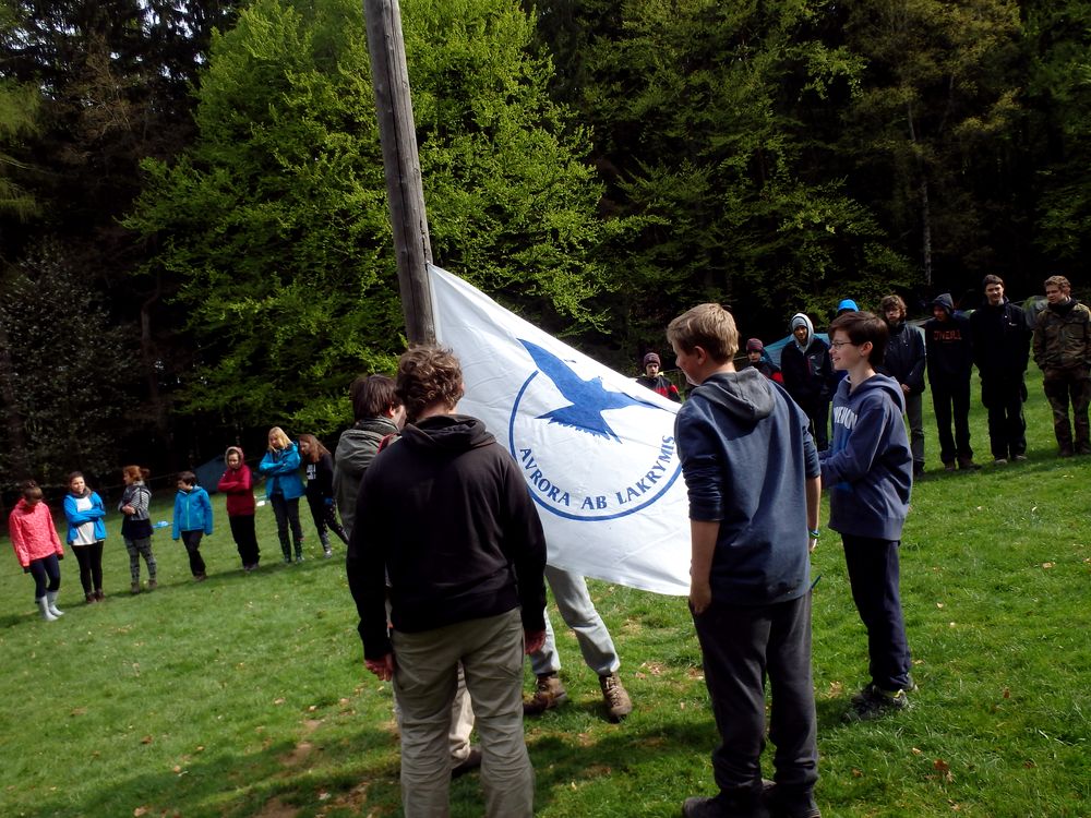 Ranní nástup se vztyčováním školní vlajky