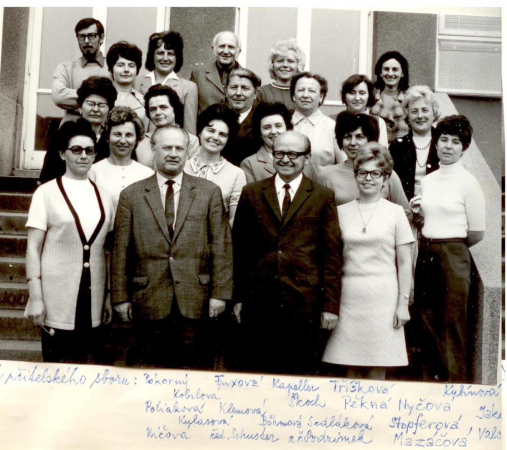 Učitelský sbor, vlevo nahoře učitel hudebky