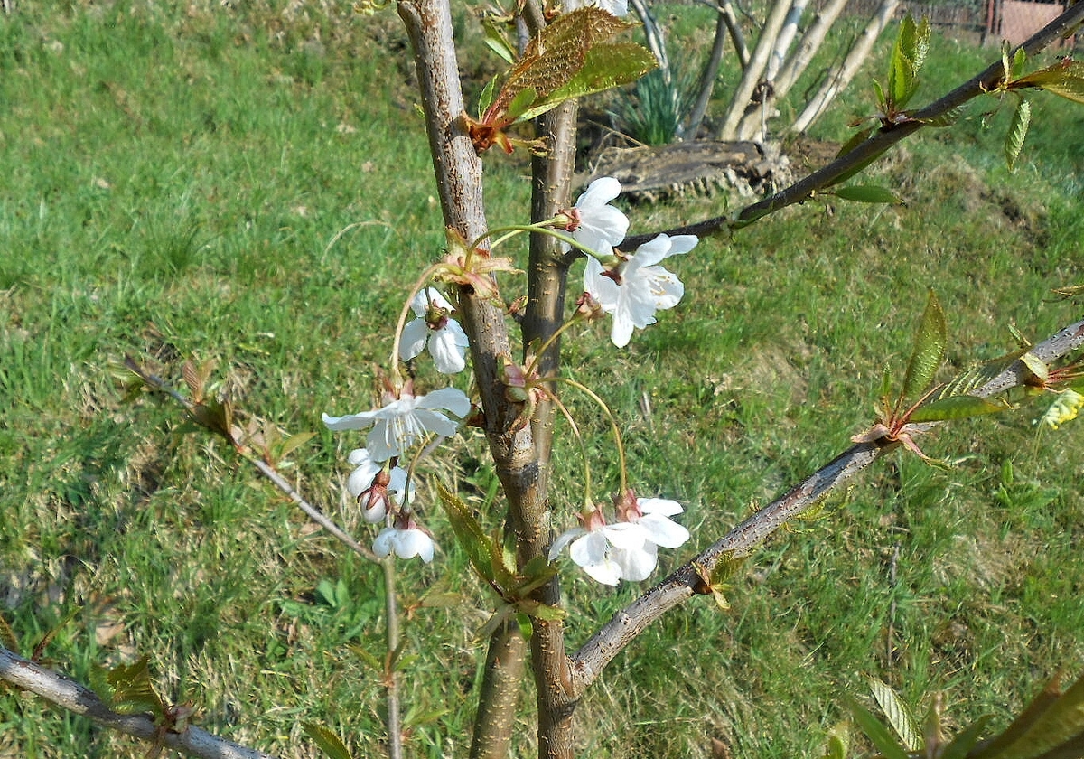 první květy mladé třešně