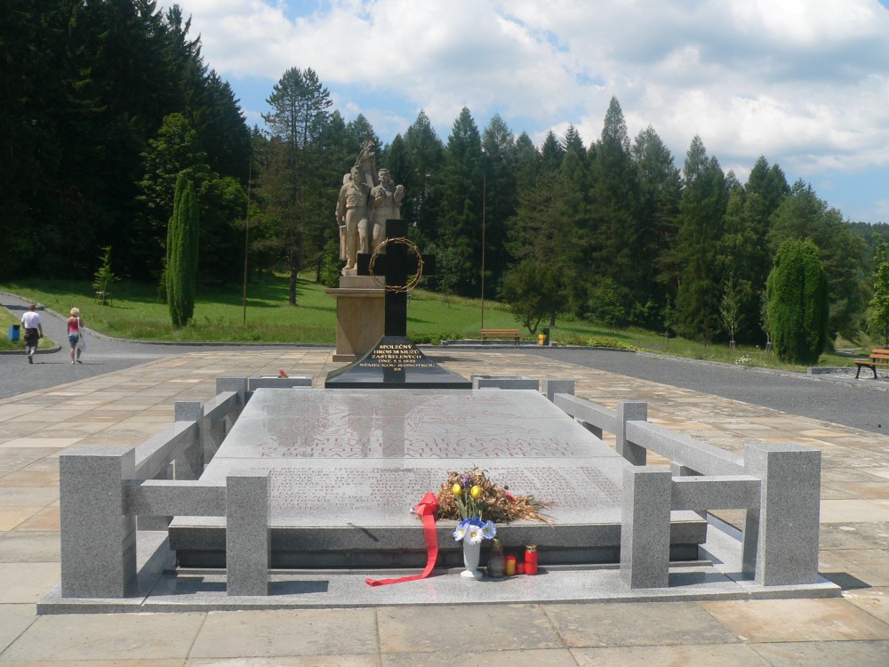 Památník na počest zavražděných mužů v Javoříčku v květnu 1945.