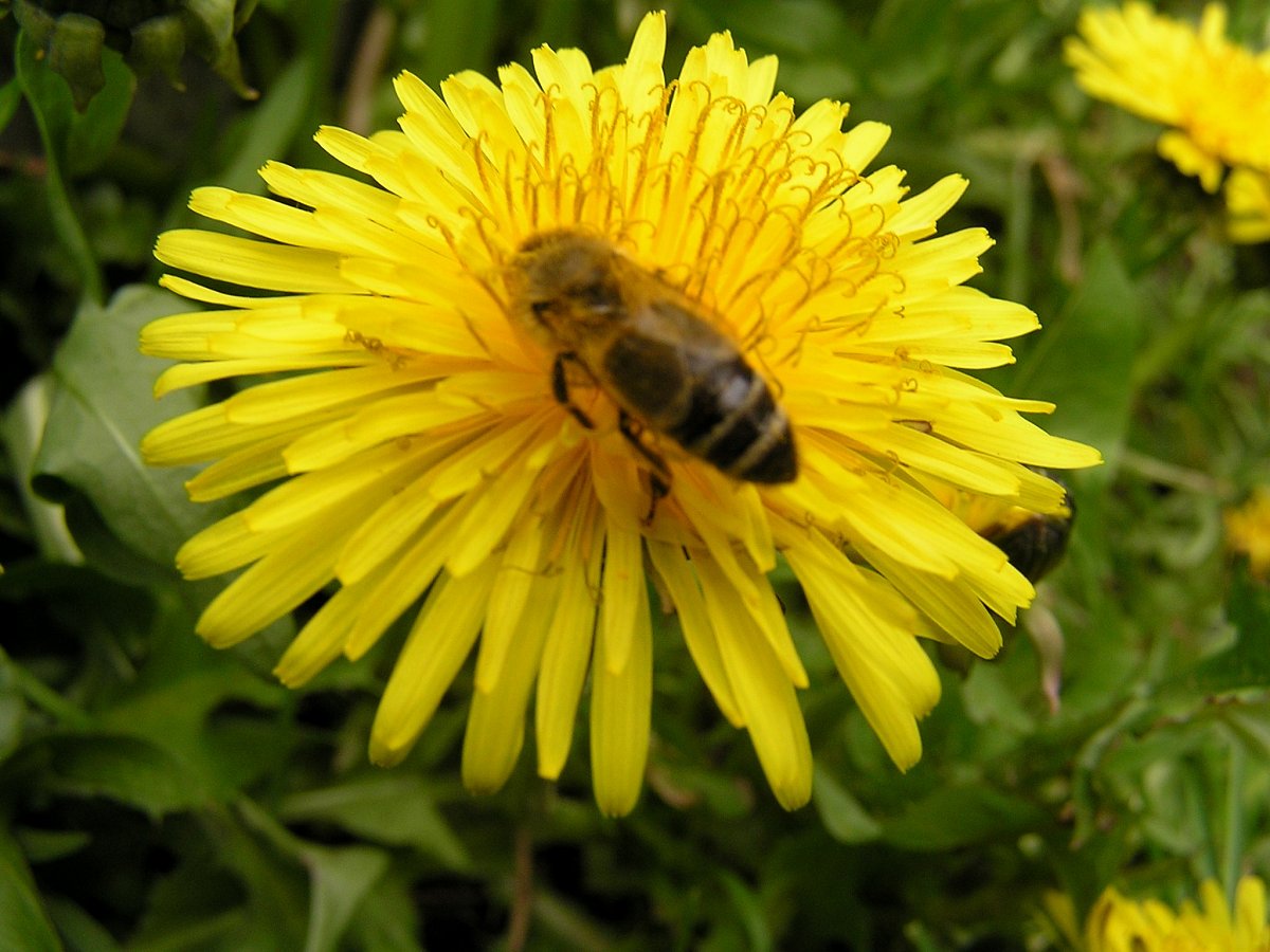Obyčejná pampeliška s včelkou.