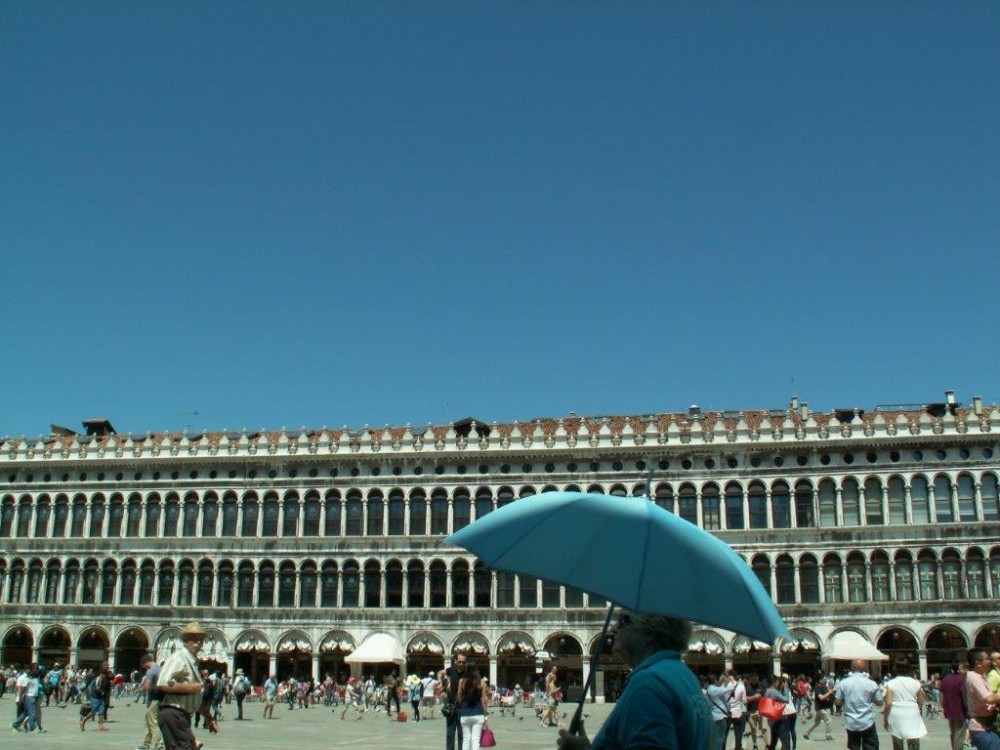 Nám. Sv. Marka a naše průvodkyně s modrým deštníkem cestovní kanceláře Atlas