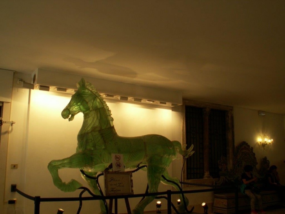 Kůň je symbolem Benátek - tentokrát skleněný v muzeu skla. Exponáty muzea - pro nás Čechy nic nového