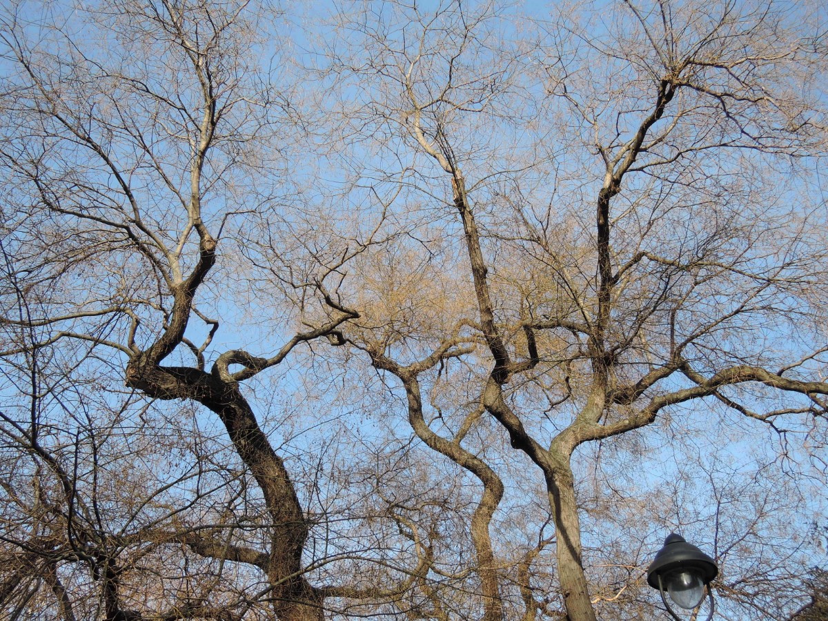 Koruna starého stromu v jarním slunci
