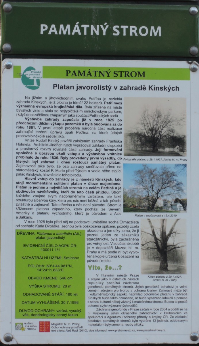 Tento strom je hned u vchodu z Náměstí Kinských