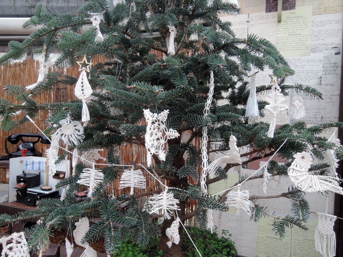 Stromek s ozdobami vyřezanými ze dřeva