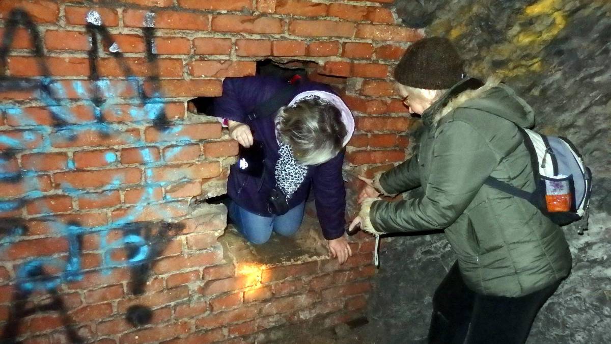 jednotlivé chodby byly zazděné, museli jsme prolézat vybouranými otvory