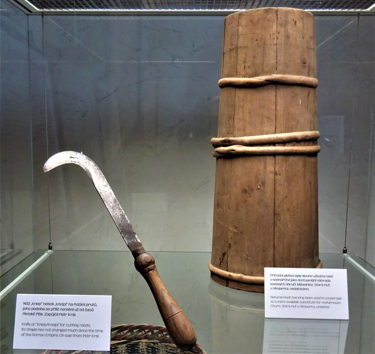Nůž „knep“ neboli „kneipl“ na řezání prutů. Jeho podoba se příliš nemění již od dob Římské říše. Máselnice; přírodní pletivo jako náhrada kovových obručí.