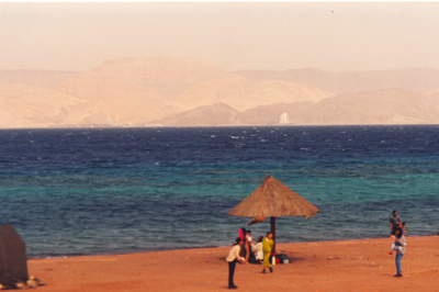 Na východním břehu Akabského zálivu se táhne hranice Saúdské Arábie, kam se vypravíme následující den. Pouze nahlédnout, aniž bychom tušili, že se v budoucnosti podíváme i do této země, která byla v roce 2001 v podstatě nedostupná. Svět se mění a nikoliv vždy k horšímu. Večer se jdeme projít na městskou pláž. Je tam nezvyklý klid. Žádná hlasitá hudba. Žádný alkohol, který je v Jordánsku povolen jen v určitých místech a na veřejných plážích se nepije. Kolem jsou arabské rodiny s dětmi, nikdo nespěchá. Je to jiný druh večerního života, než na jaký jsme zvyklí z evropských letovisek.