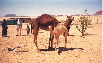 Neujeli jsme daleko, když se na cestě objevil stařeček, který divoce mával rukou, abychom mu zastavili. Vypadal jako pobuda, moc se mi nechtělo vzít ho do auta, ale manžel již zastavil. Záhy došlo k nečekané proměně. Stařeček si omotal na hlavu tradiční beduínský červenobílý šátek, který slouží k ochraně před sluncem, pískem a prachem a je často upevněn černým páskem. Z pobudy se rázem stal hrdý obyvatel pouště. Problém byl v tom, že jsme netušili, kam chce jet. Znali jsme pouze pár arabských slov. Měli jsme však ruce. Doprava? "Aywa" (ano). Doleva? "Lā" (ne). Netrvalo dlouho a dojeli jsme do jeho vesnice. Zastavili jsme u nějakého domu, náš stopař zmizel, ale objevila se laskavá žena a uvedla nás do domu. Usadila nás na polštáře na zemi v prázdné místnosti a nechala nás tam. Nevěděli jsme, co se bude dít. Asi za půl hodiny vešla celá rodina. Seděli jsme v kruhu a mezi námi se začaly vršit hromady jídla. Pili jsme vodu ze studny. Trochu s obavami, ale naše zažívací ústrojí bylo v té době zřejmě odolnější než dnes. Chody nebraly konce. Zbylo místo i na zákusky. Během oběda jsme se bez úspěchu pokoušeli o konverzaci. Pochopila jsem pouze, že rodina má šest dětí. Oni zase porozuměli mému přání vidět velblouďátko. Po jídle mi ho splnili.