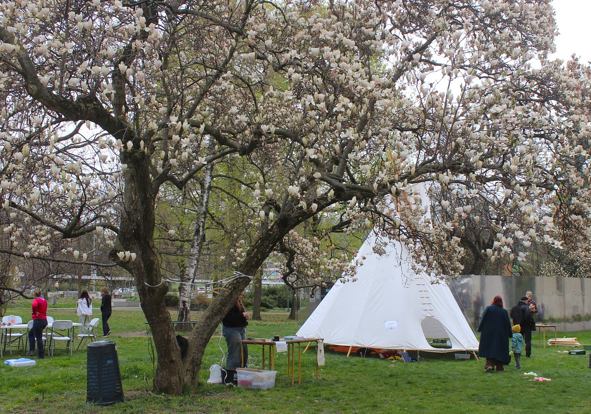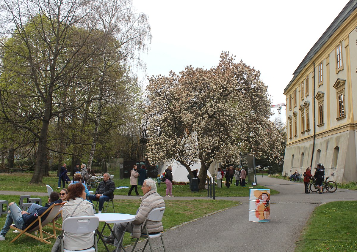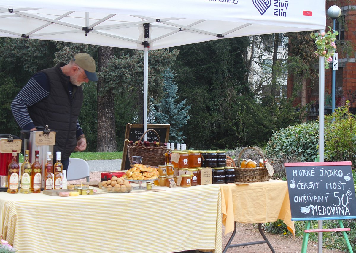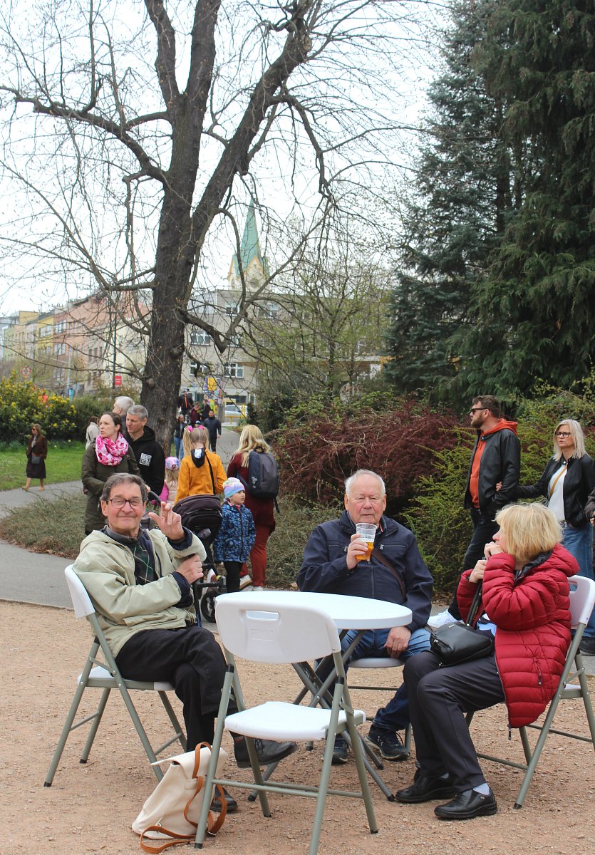 Když jsme procházeli městem, všimli jsme si, že se před zámkem v parku něco chystá. Tak jsme se vydali tím směrem. Začínala tam kultruní akce Živý Zlín aneb Vítání jara. Byly tam stánky s občerstvením a regionálními potravinami, stan pro děti, různá sportoviště, a po parku roztoušená lehátka a židličky se stolky. Akci zahájil primátor Jiří Korec, a popřál všem hezké jaro. Ve stánku pivovaru Malenovice bylo pro zájemce i čepované jarní zelené pivo. My jsme si koupili pravý včelí med od včelařství U sv. Vendelína z Pohořelic.